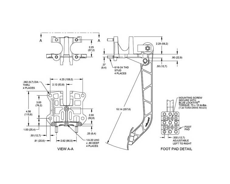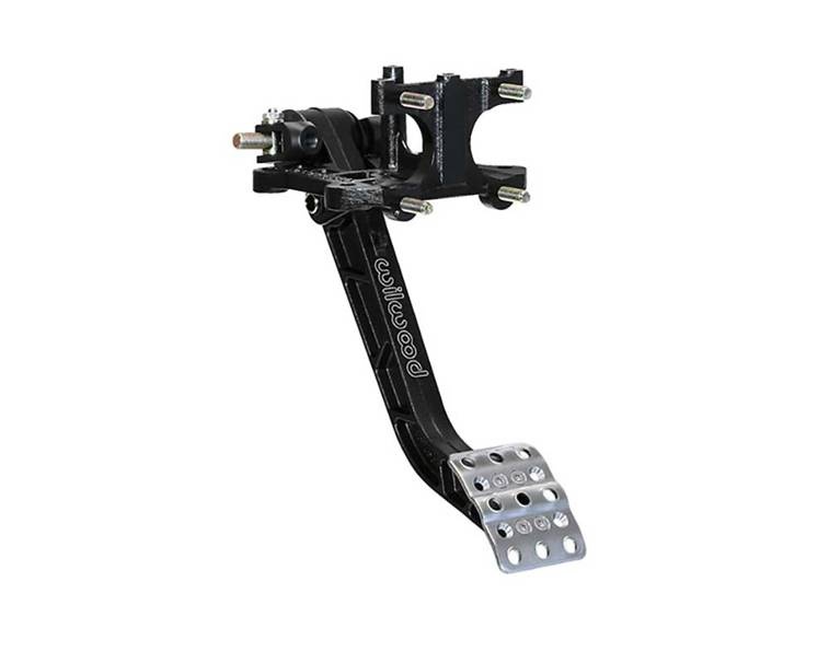 This swinging mount pedal assembly mounts two single outlet brake master cylinders in a reverse position inside the firewall. It features a lightweight aluminum frame, with a high strength reinforced I-Beam style forged 5.1:1 ratio pedal arm. The non-skid waffled pedal pad can be laterally adjusted for driver preference or clearance as necessary. The balance bar incorporates a positive detent stop every full turn to maintain adjustment position and driver awareness. A pin and clevis pushrod attachment system provides highest possible degree of misalignment angle for bind free operation through the entire range of travel. The balance bar can be locked in place with the included jam nut, or used with an optional remote cable for quick on-track adjustments. This pedal accepts any Wilwood vertical mount flange single outlet master cylinders that are ordered separately by style and bore size.